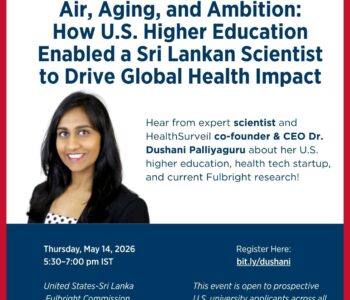In this interactive session with EducationUSA Sri Lanka and Fulbright Sri Lanka, Dr. Palliyaguru will share her journey as a school student in Sri Lanka who pursued higher education from her Bachelor’s degree to PhD in the United States. She will discuss her career path to becoming a startup founder and CEO plus her Fulbright research with ample time for dialogue and networking.